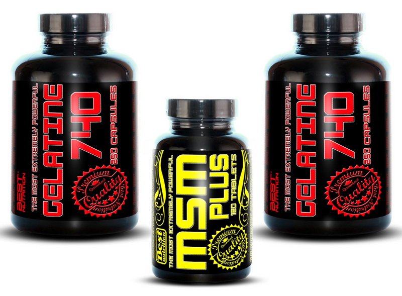 1+1 Zadarmo: Gelatine 740 + MSM od Best Nutrition 250kaps + 250kaps + 120tbl