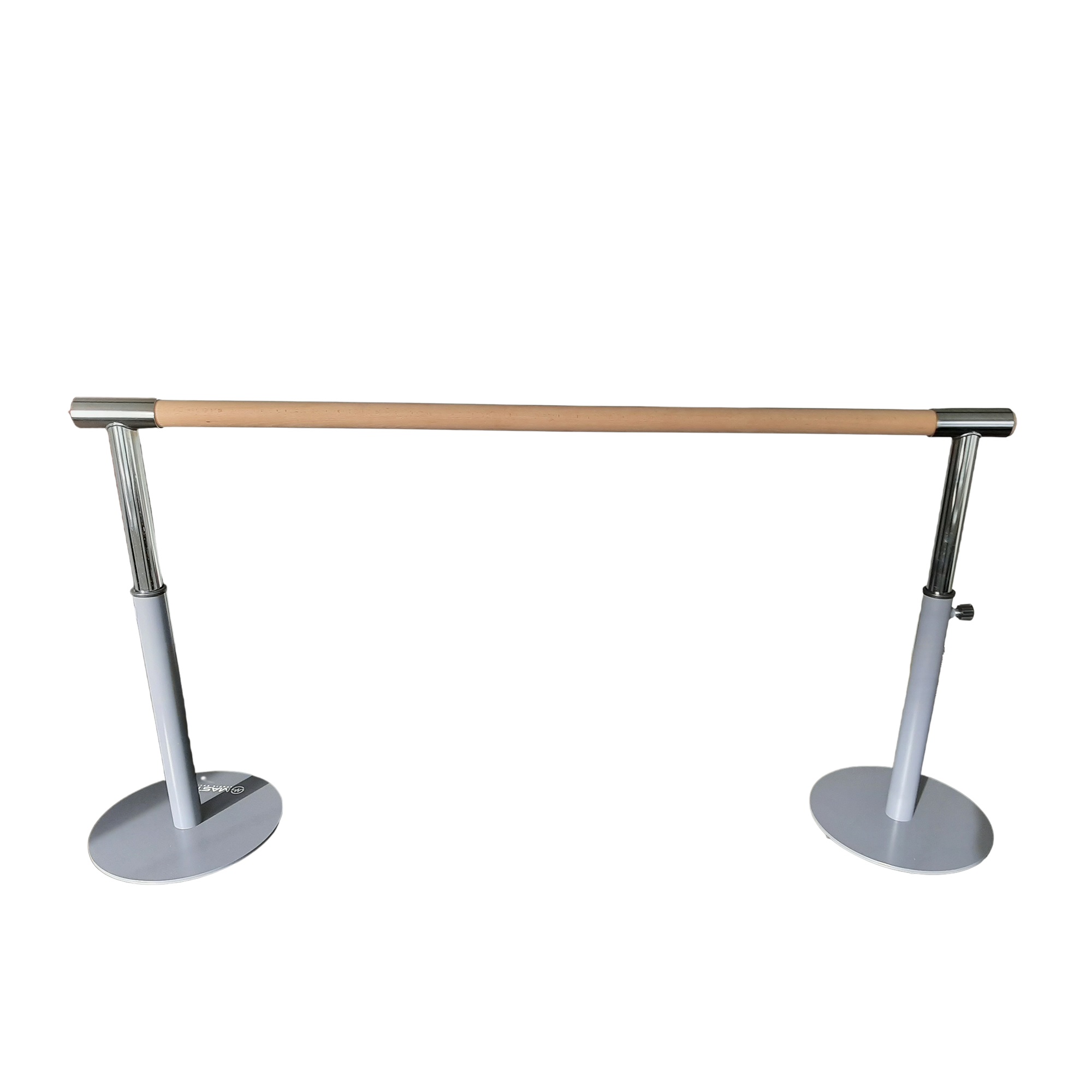 Baletná tyč MASTER Pro je voľne stojaca 175 cm široká baletná tyč s oceľovou konštrukciou, ktorá umožňuje nastaviť výšku drevenej tyče v šiestich stupňoch od 80 do 105 cm nad zemou.