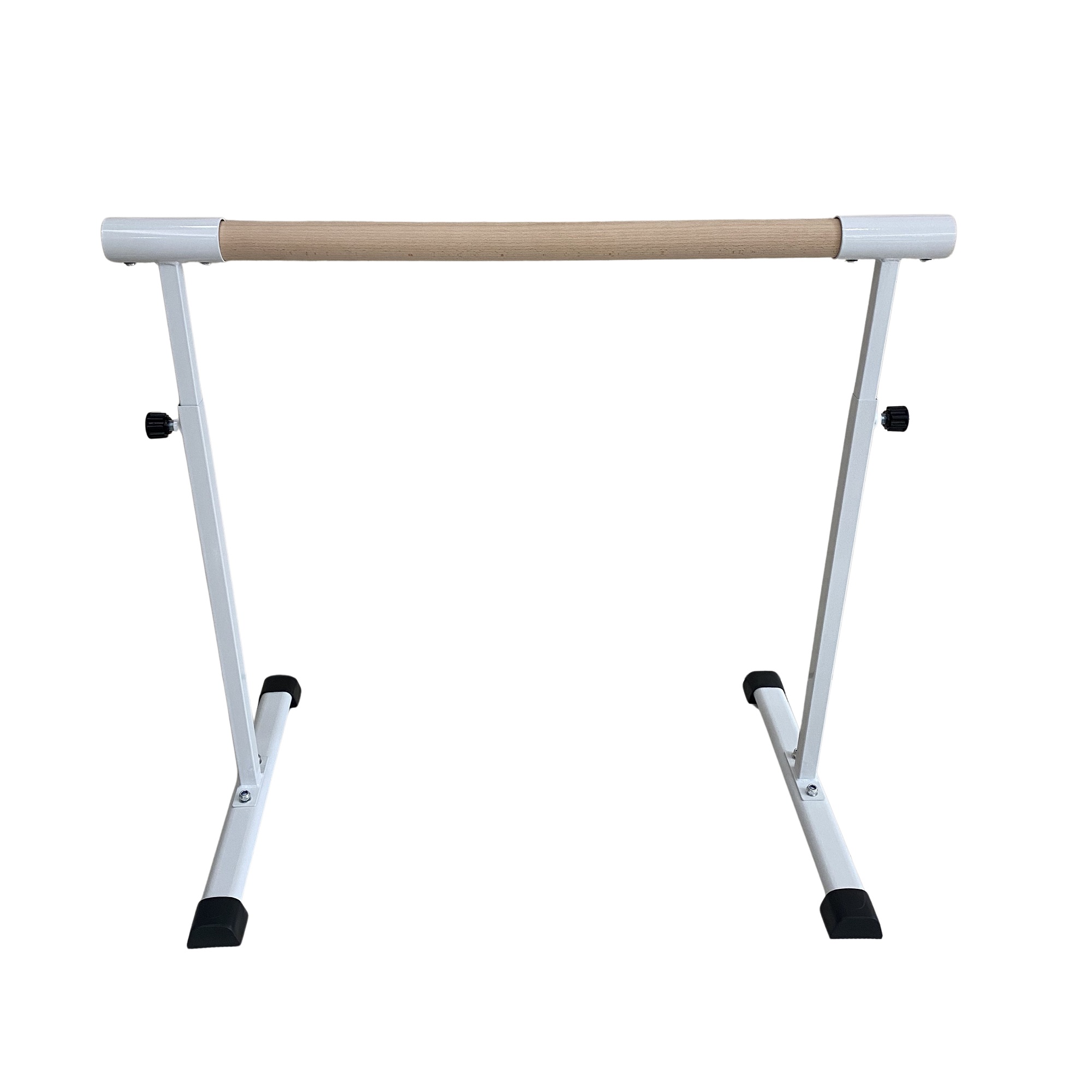 Baletná tyč MASTER je voľne stojaca 110 cm široká baletná tyč s oceľovou konštrukciou, ktorá umožňuje nastaviť výšku drevenej tyče v dvoch stupňoch – 85 cm alebo 100 cm nad zemou.