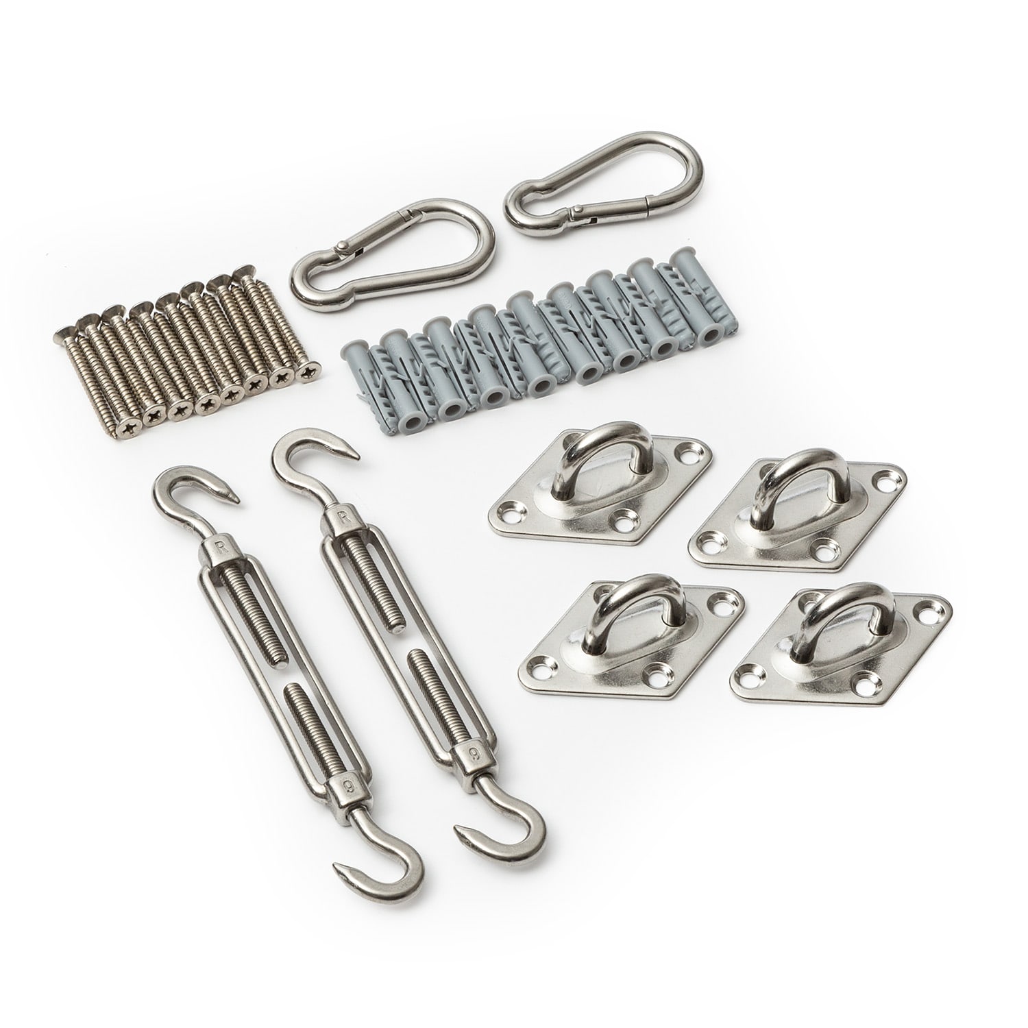 S montážnou súpravou Bambuswald na naše slnečné clony máš úplnú flexibilitu pri upevňovaní. 24-dielna súprava je vyrobená z nehrdzavejúcej ocele a je ideálna na montáž na drevené stĺpy, steny alebo stropy. Fixačná súprava ti umožňuje optimálne upevniť ochranu pred slnkom a namontovať ju odolne proti vetru.