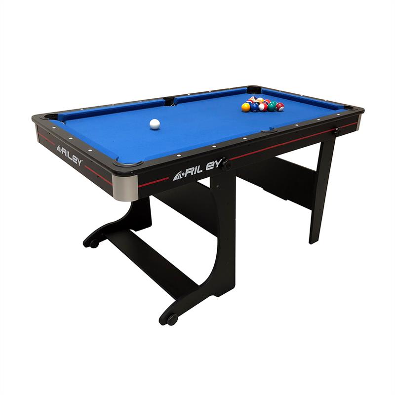 Okrem toho, že je veľmi praktický, je tiež dodávaný spolu s dvoma tágami, guľami a trojuholníkom. Tento biliardový stôl značky Riley už od 80-tych a 90-tych rokov odporúča 6-násobný majster sveta v biliarde Steve Davis. Poznámka o výrobcovi: Značka Rilley je vo svete stolových športov veľmi známa a na trhu pôsobí už od roku 1890. Svoju slávu si táto malá firma z Manchestru získala na začiatku 20-teho storočia, keď začala vyrábať kvalitné biliardové stoly, ktoré v Británii využívali tak profesionáli, ako aj milovníci pubových športov. Následne rozšírila svoju ponuku aj o iné stoly a herné zariadenia, ktoré vyrába dodnes. Prosíme, všimnite si, že tento stôl dodávame ako čiastočne zmontovaný kus. Dokončenie montáže trvá – v závislosti na technickej zručnosti – približne 15 minút. Upozornenie: Stôl je nevhodný pre deti do 3 rokov.