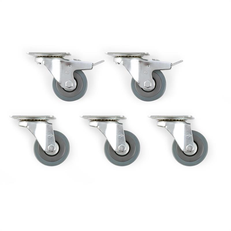 Čistý oddych: aby ste mohli svoje plážové sedenie bez námahy otočiť proti slnečným lúčom, máte k dispozícii Blumfeldt Hiddensee kolieska. 5 koliesok presvedčí svojou nosnosťou po 100 kg na každé dvojité koliesko a priskrutkujete ich mávnutím ruky na spodnú stranu plážového sedenia. Dve z piatich koliesok sú vybavené zaisťovacou brzdou. Tak ostane plážové sedenie pevne a bezpečne stáť na svojom mieste. 71 mm nad zemou: prostredníctvom mierneho vyvýšenia je spodná strana účinne chránená pred vlhkosťou, a tak je zabezpečená dlhšia radosť z plážového sedenia. Dvojité guľkové ložisko v otočnom venci a pozinkovaná os zvyšujú polomer pohybu každého kolieska. Pritom sa 5 koliesok vyrobených z poloelastickej gumy ľahko kĺže po mokrých trávnatých alebo pieskových plochách. Či už rýchly útek pred blížiacimi sa dažďovými oblakmi alebo hľadanie optimálneho miesta na slnku: s Blumfeldt Hiddensee kolieskami na plážové sedenie môže aj jednotlivec manévrovať s plážovým sedením úplne bez námahy.
