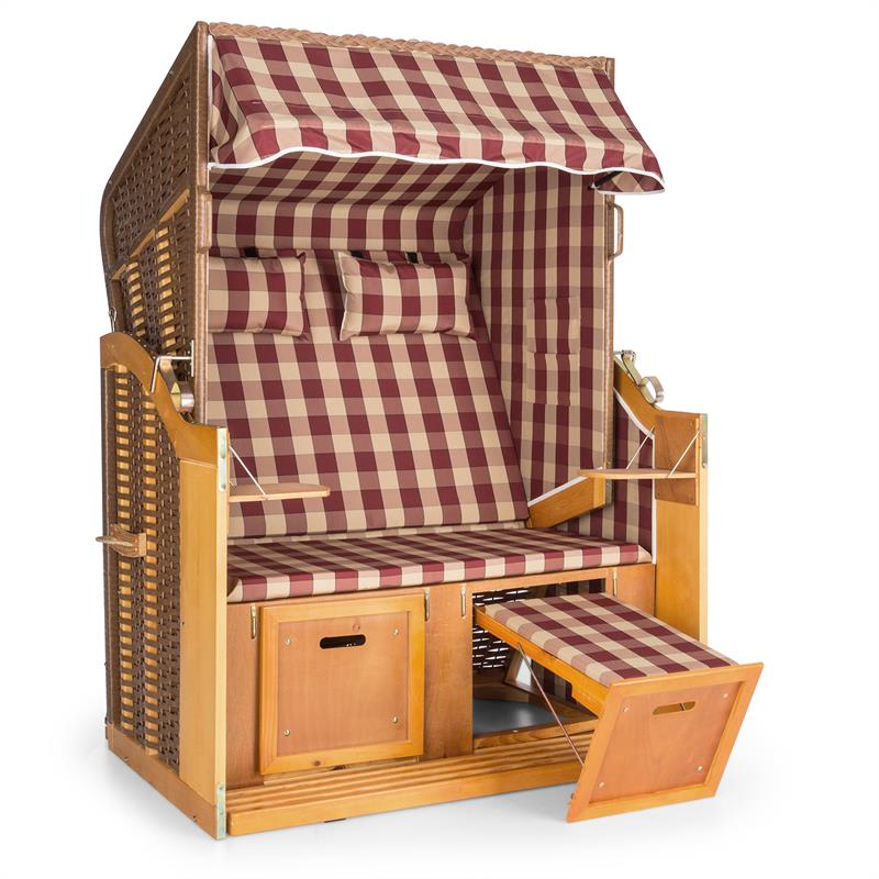 Blumfeldt Hiddensee, plážové sedenie, plážový kôš XL, dvojsedadlo, ležadlo, borovica, červené/biele, károvaný motív