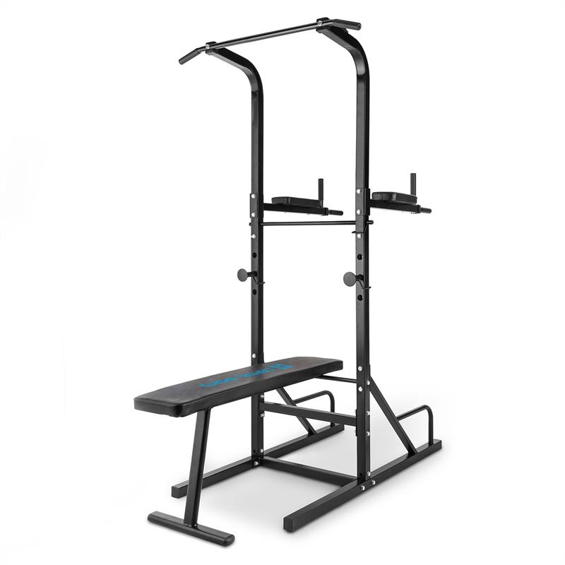 Posilňovacia veža Multi Tower od výrobcu Capital Sports predstavuje všestranný posilňovací nástroj, na ktorom možno vykonávať množstvo cvičení nielen s vlastnou váhou.Na jednej strane veže sa nachádza lavička, ktorá sa perfektne hodí na zdvíhanie činiek. Na tento účel sú k dispozícii i dva držiaky na bezpečné uloženie dlhej činky. Tri výškové pozície slúžia na dokonalé prispôsobenie individuálnym telesným rozmerom. Samozrejme, lavička neslúži len na posilňovanie činkami. Pár pohybmi rúk sa dá rýchlo a ľahko sklopiť, ak sa práve nepoužíva, čím šetrí aj miesto potrebné na jej vystavenie.Aj druhá strana ponúka možnosť rôznych cvičení. Už naspodu veže sa nachádzajú na stojanových nohách dve guľovité násady na posilňovanie klikami. Vo výške hrude sa okrem iného nachádzajú i dve posilňovacie ramená, ktoré sa so sklopenou lavičkou hodia na zdvihové posilňovanie nohami. Vodorovné ramená na veži zase umožňujú zdvihové posilňovanie rukami – tzv. cviky dipy.Multifunkčná veža je určená pre atlétov do 120kg. Jej kompaktné rozmery umožňujú vystavenie aj na priestorovo obmedzených miestach – čiže i v pohodlí domova. Veža sa skladá z kvalitnej oceľovej konštrukcie potiahnutej čiernou práškovou farbou, ktorá ju chráni pred škrabancami a koróziou. Lavička a podklady pre ramená sú vystužené a potiahnuté umelou kožou.Multi Tower sa dodáva ako montážna sada. Montáž je jednoduchá a trvá cca. 60 minút. Vyžaduje len použitie skrutkovačov č. 13 a 17.Prosím, majte na vedomí, že maximálna nosnosť ramien na precvičovanie dipov dosahuje 85kg.