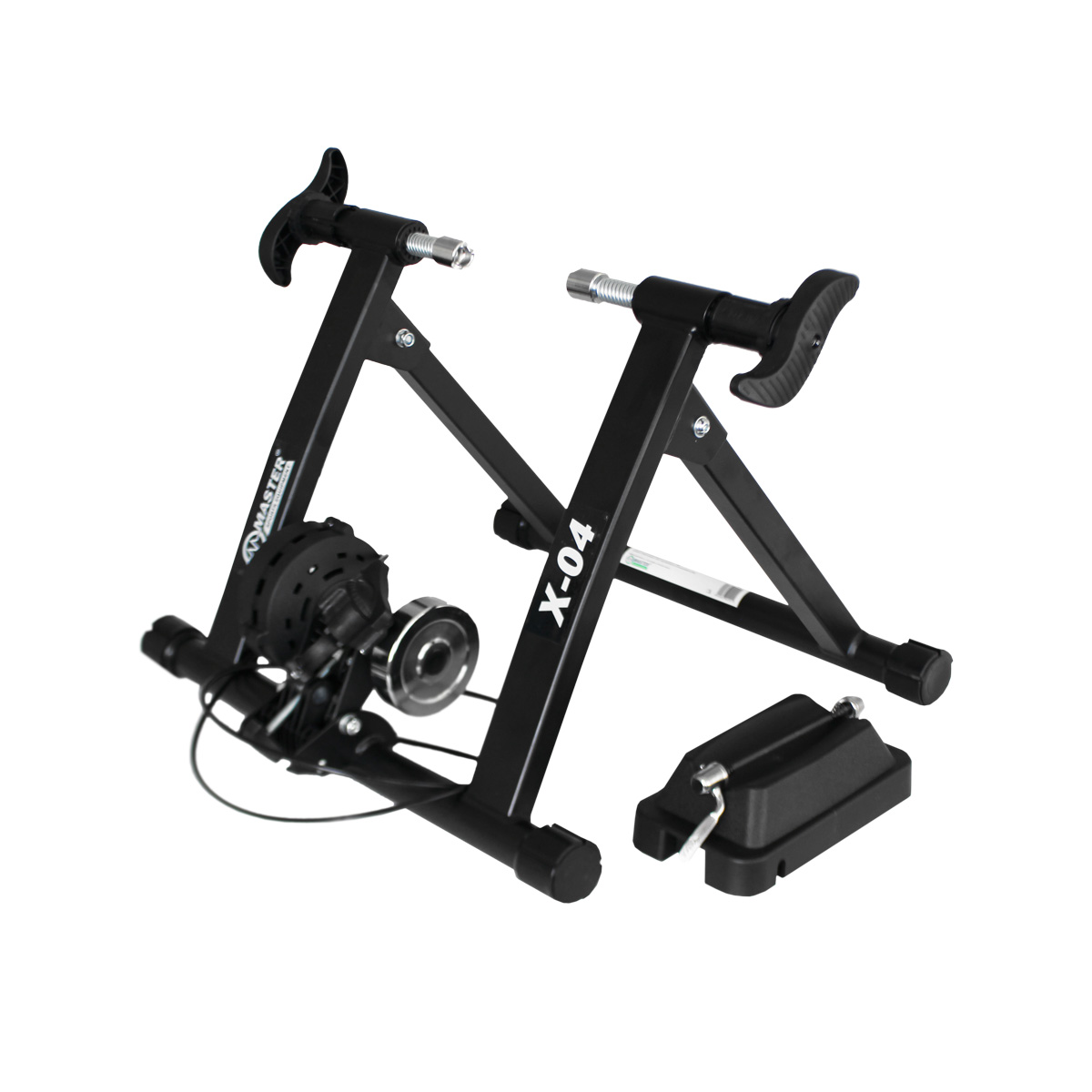 Cyklistický trenažér MASTER X-04 s magnetickou brzdou a stabilným rámom. Brzda má osmistupňovú reguláciu brzdného odporu. Regulácia odporu sa vykonáva páčkou, ktorú možno umiestniť na riadidlá. Koleso sa upevňuje pomocou oceľových upínacích skrutiek s plastovými maticami. Cyklotrenažér MASTER X-04 je ideálnym pomocníkom pre domáci tréning