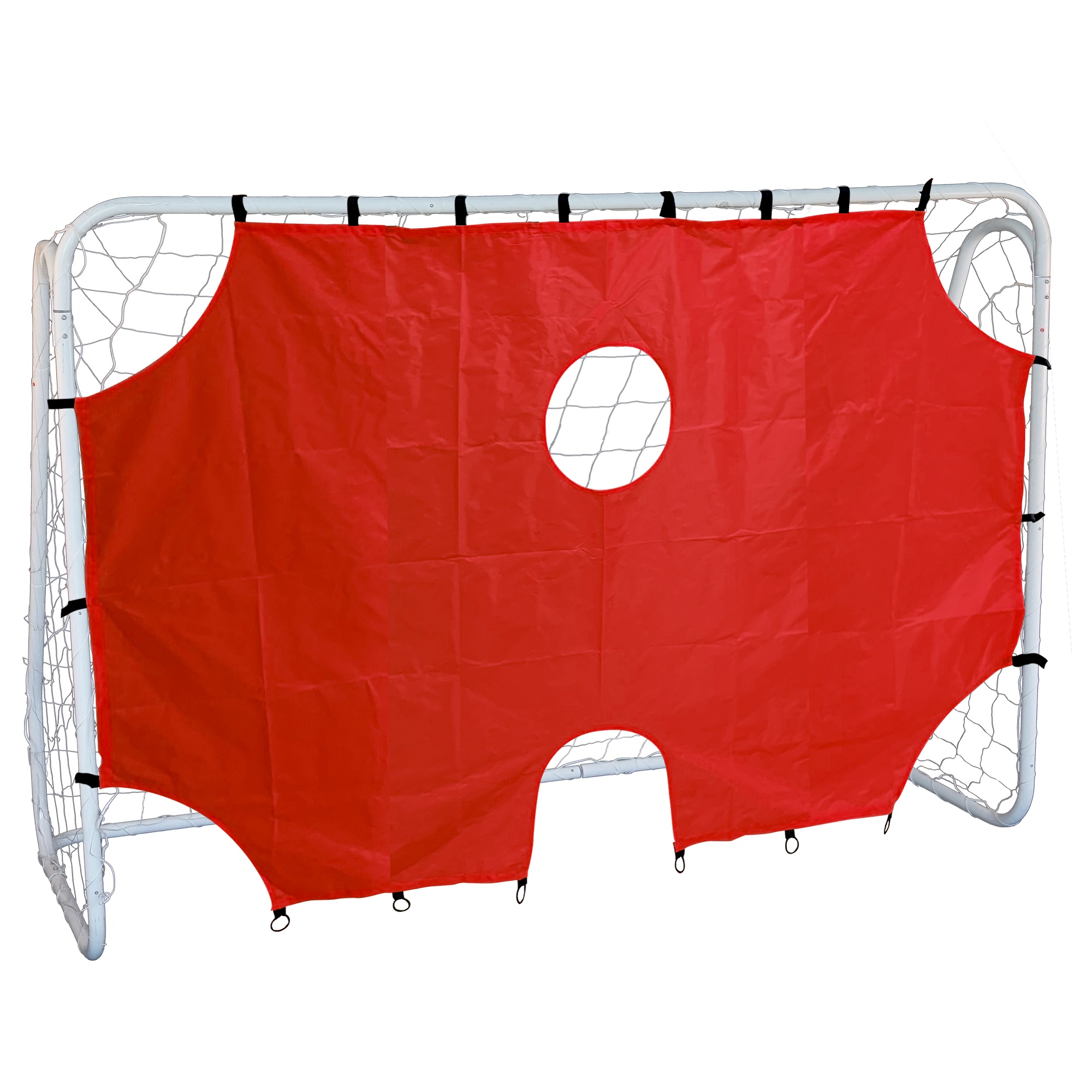 Oceľový futbalová bránka MASTER so sieťou a plachtou s tréningovými otvormi. Oceľová konštrukcia bránky má sklopné bočnice, na uskladnenie bránky je tak potrebné menej miesta ako pri klasických bránkach. Plachta s tréningovými otvormi je uchytená pomocou pásikov so suchými zipsami.