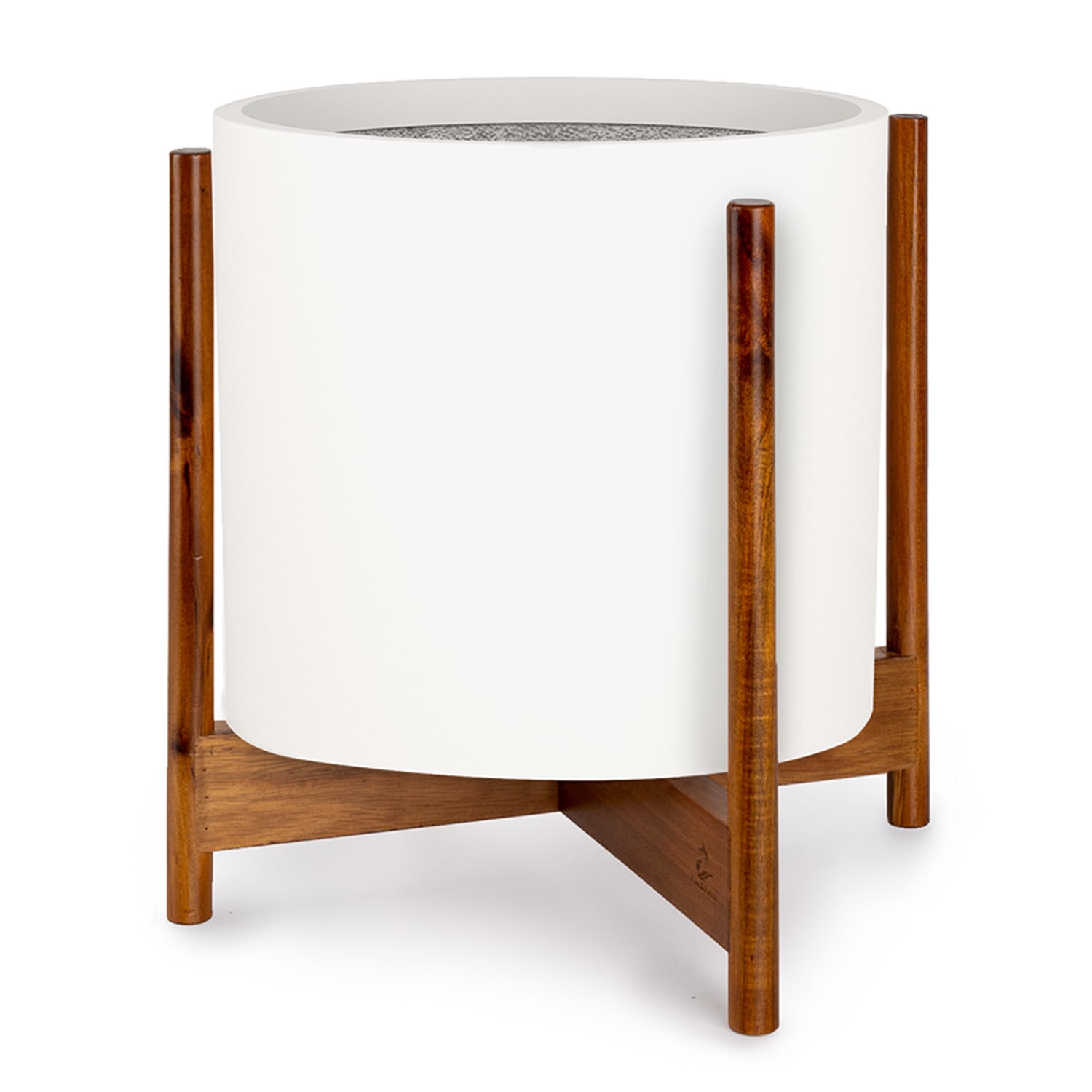 Gendt + Zeist, sada kvetináča s stojanom, veľkosti XL, vláknitý kameň, akáciové drevo