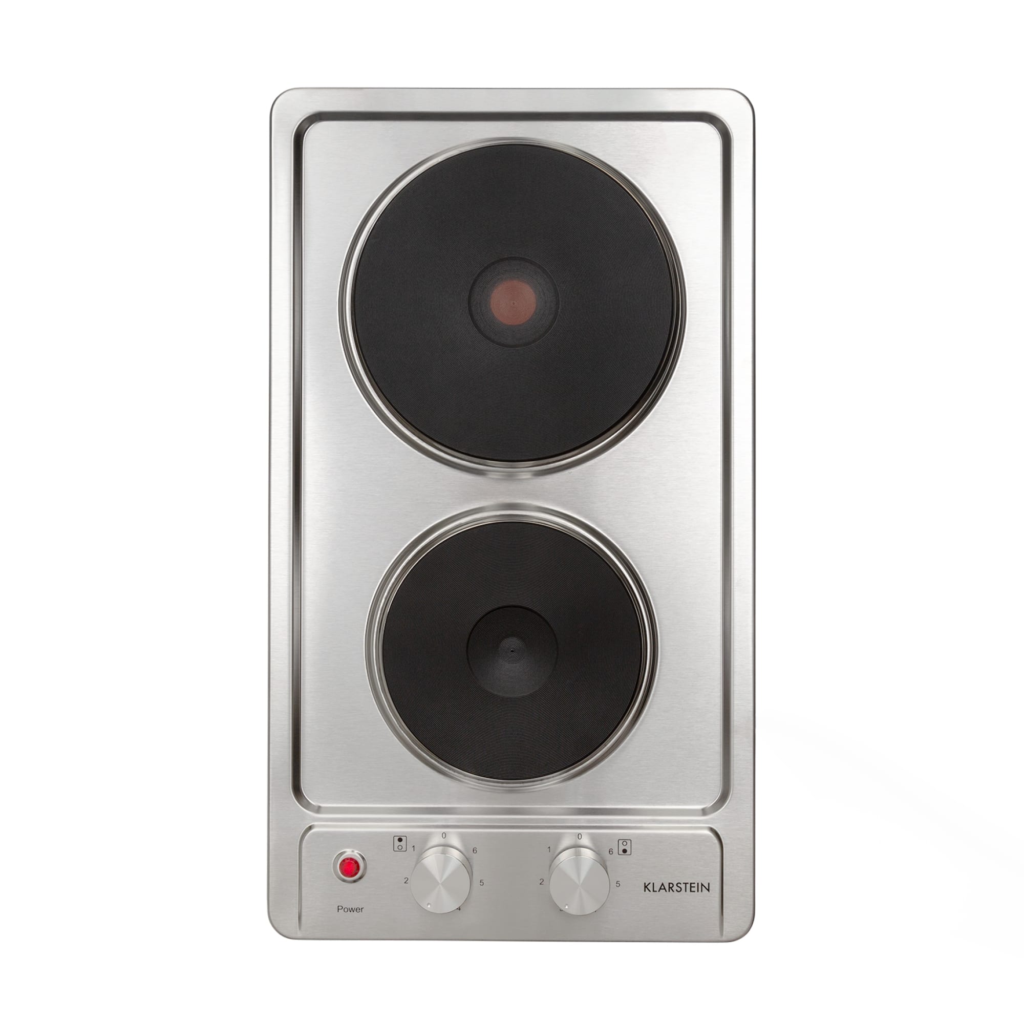 Jednoduchá, výkonná a geniálna: robustná elektrická varná doska Klarstein Appetito Domino presviedča svojim super jednoduchým použitím, klasickým dizajnom a svojim výkonom. Dve nad sebou zoradené varné plochy s výkonom 1 x 1000 a 1 x 2000 wattov, dva otočné ovládače so 6 stupňami výkonu a LED kontrolka: hotová je zabudovaná varná doska, ktorá si nájde miesto v každej kuchyni. Lesklý finiš dotvára povrch z nerezovej oceli, ktorý sa ľahko čistí.