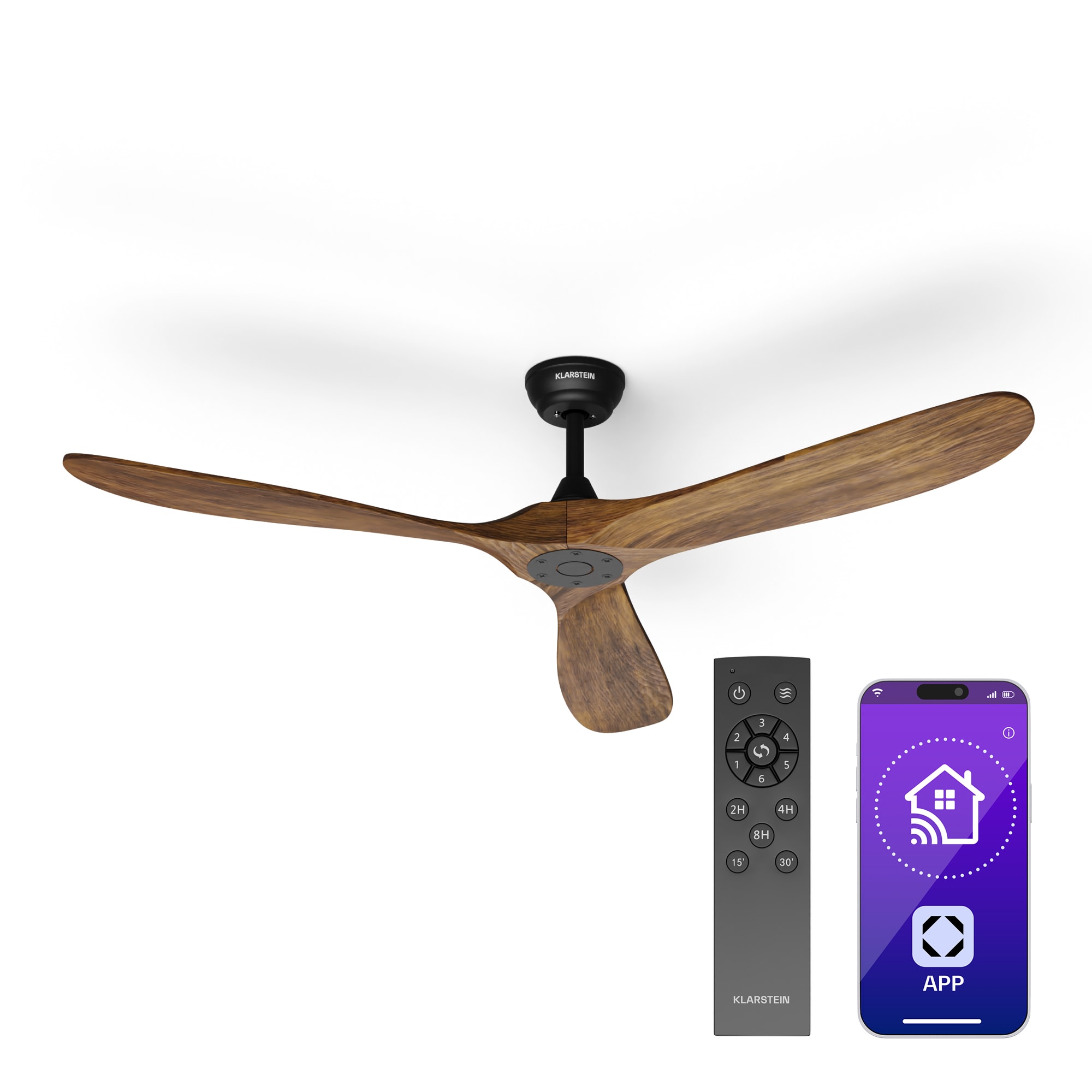 Klarstein Bahama Breeze Smart Stropný ventilátor , lopatky rotora z masívneho dreva, diaľkové ovládanie + ovládanie pomocou aplikácie