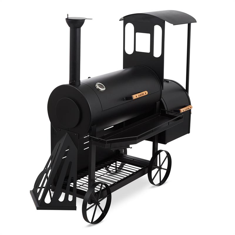 Plnou parou k chuti! Gril s údiarňou Klarstein Dampflok pripraví lahodne grilované alebo údené ryby, mäso či zeleninu pre mnoho hladných žalúdkov. Každú záhradu premení na veľkú železničnú stanicu! Keď sa gril na drevené uhlie Klarstein Dampflok rozhorúči, pracuje celou silou pre úplný chuťový zážitok! Masívny gril ukazuje na prvý pohľad, že pod krytom z 3 mm hrubého oceľového plechu ide o kvalitu – a pohľad na neho v záhrade zaujme nielen železničných nadšencov. Pod kotlom aj pod kabínou sa ukrývajú dve veľké grilovacie plochy, ktoré možno obsadiť podľa chuti. Zaručene nakŕmi veľmi veľa hosťov na párty. Či už grilovanie, pomalé varenie alebo údenie, v týchto kotloch je všetko pochúťkou. Praktický teplomer pomáha kedykoľvek kontrolovať teplotu v údiarni Klarstein Dampflok, zatiaľ čo pomocou vetracích klapiek je teplota bez problémov regulovaná. Veľká odkladacia plocha pred hlavným grilom uľahčuje grilovanie: Misy s mäsom, omáčky, grilovacie náradie alebo pivová fľaša grilmajstra: Je tu priestor pre všetko. Veľká polica pod kotlom ukrýva dostatok paliva pre kontinuálne údenie pstruha, jaterníc alebo slaniny. Záhradný gril s údiarňou Klarstein Dampflok rýchlo zasýti hladné žalúdky párty hostí!