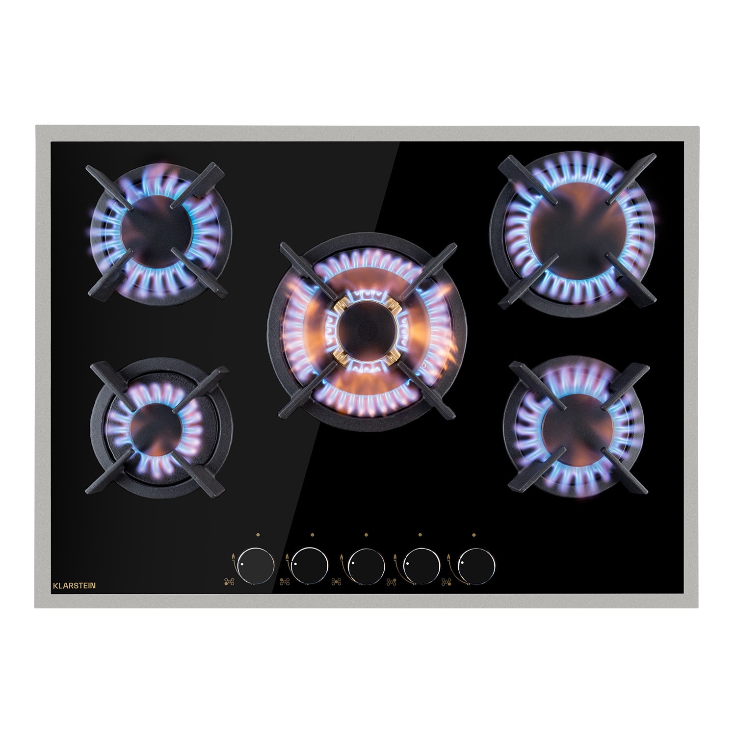 Klarstein Goldflame 5 Prime, plynová varná doska, 5 Messing horákov, sklokeramika