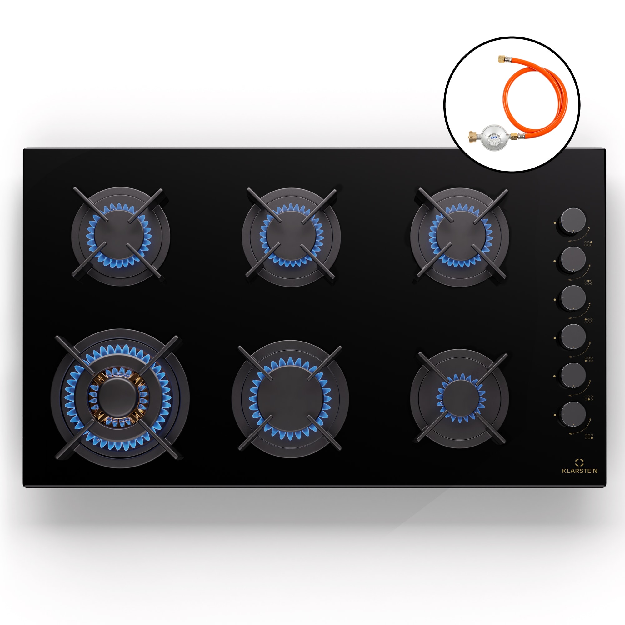 Klarstein Goldflame 6, plynová varná doska, sebestačná, 6 horákov, bočné ovládanie, plyn/propán, sklokeramika, čierna