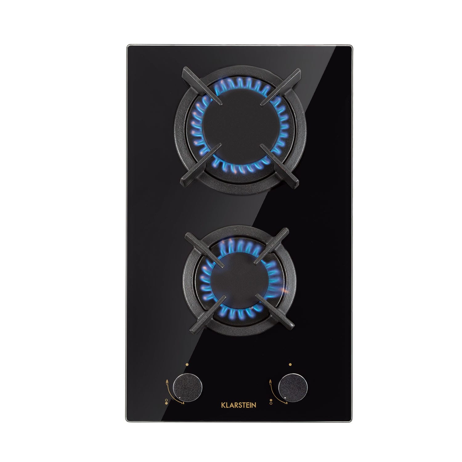 Klarstein Goldflame Domino, plynová varná doska, 2 mosadzné horáky, sklokeramika