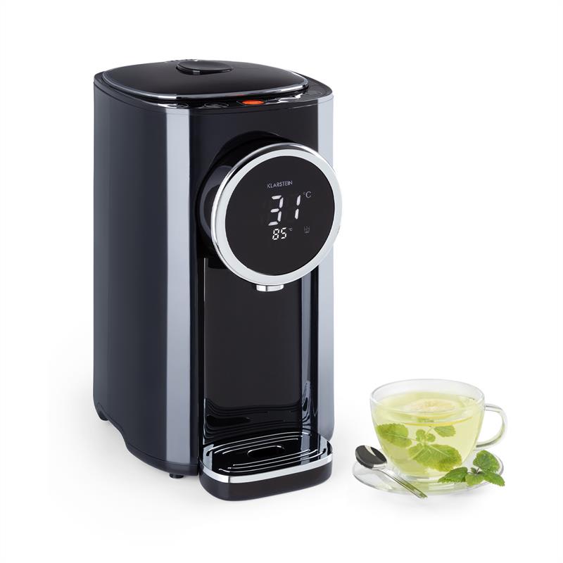 Some like it hot: zásobník na teplú vodu Klarstein Hot Spring spoľahlivo zásobuje domácnosti a kancelárie s horúcou vodou, kedykoľvek to je potrebné.Je veľa príležitostí, na ktoré sa zásobník na teplú vodu Klarstein Hot spring hodí: rýchlo si pripraviť čaj pri požadovanej teplote alebo si pripraviť instantné polievky s presne správnym množstvom vody, to sú len dve z mnohých možností. Veľká nádrž na vodu z ušľachtilej ocele pojme až 5 litrov vody a perfektne sa hodí okrem domácností aj do kancelárie. Ovládanie zásobníka na vodu, s ochranou proti prehriatiu a ochranou chodu na sucho, je úplne jednoduchá: Na hornej strane sa nachádza dotyková plocha s tlačidlami na zohrievanie, nastavenie teploty (45-95°C), výdaj vody, uvoľnenie detskej poistky ako aj na filtrovanú vodu. Stačí nastaviť želané množstvo, teplotu a stlačiť tlačidlo na výdaj vody – a veľmi rýchlo dostanete perfektne ohriatu, horúcu vodu. A ovládanie je pritom detsky ľahké a veľmi jednoducho sa stane rutinou. Odkvapkávacia miska sa dá jednoducho odobrať a v prípade potreby opláchnuť, zatiaľ čo mnohé funkcie, ako rýchle ochladenie a signalizácia nízkej hladiny vody, dodatočne uľahčujú ovládateľnosť zariadenia. Vďaka svojmu veľkému, prehľadnému displeju nemáte pod kontrolou len všetky dôležité informácie – zásobník na teplú vodu je ním aj pútačom pohľadov a zapadne skoro do každej kuchyne.