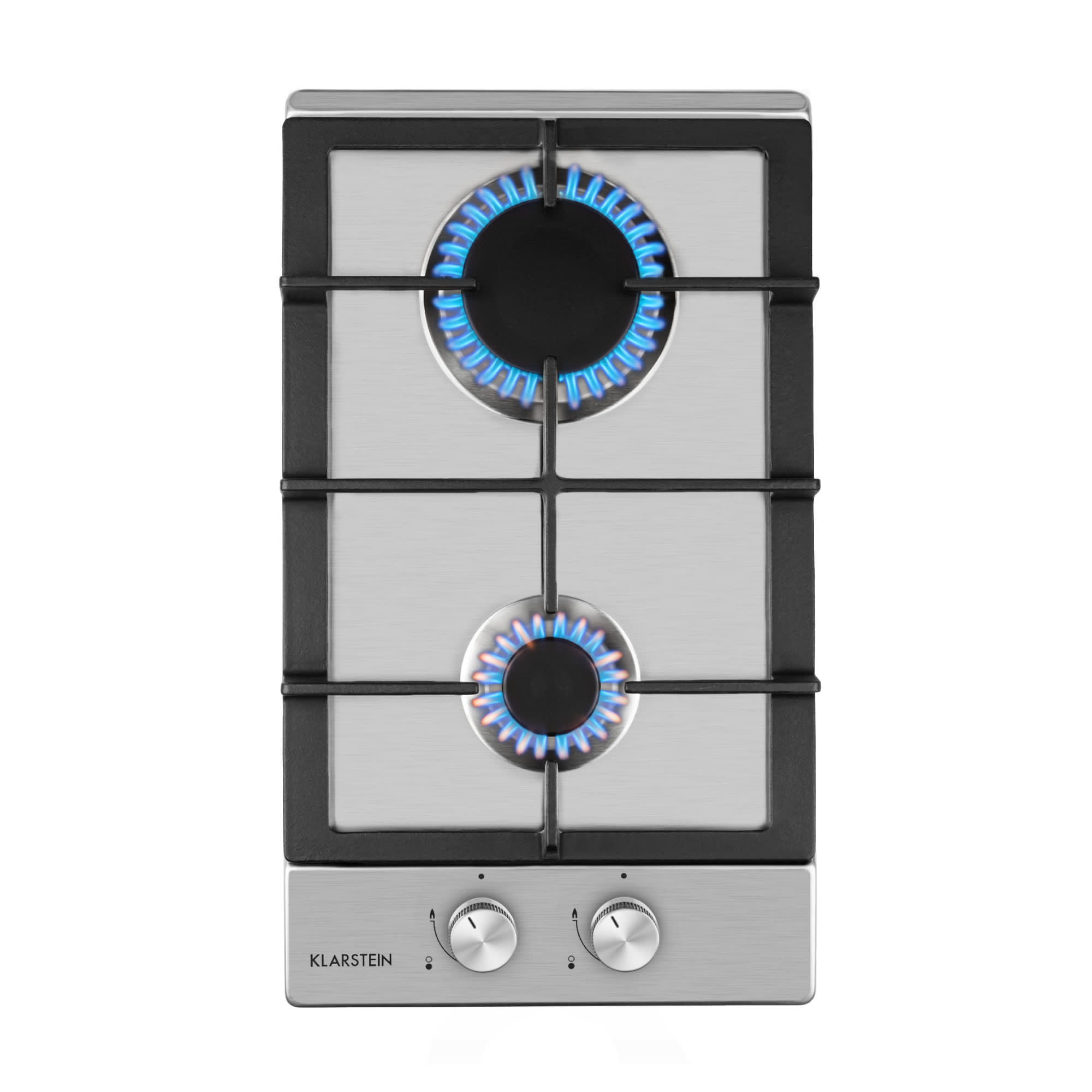 Klarstein Ignito Domino, plynová varná doska, 2 Sabaf horáky, nehrdzavejúca oceľ, strieborná