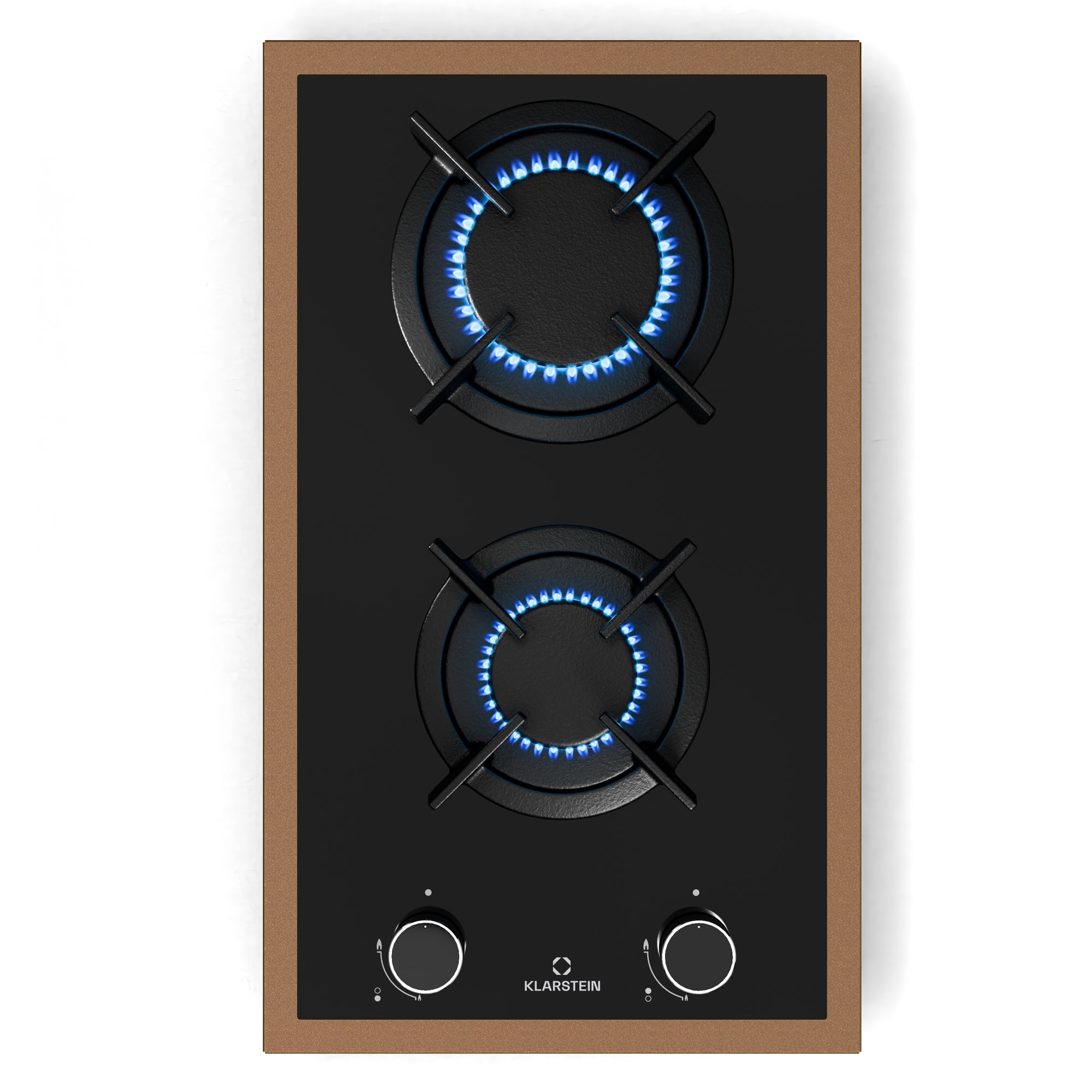 Klarstein Lumiflame plynová varná doska, 2 horáky, medený rám, elektrické zapaľovanie, výkon 4,2 kW
