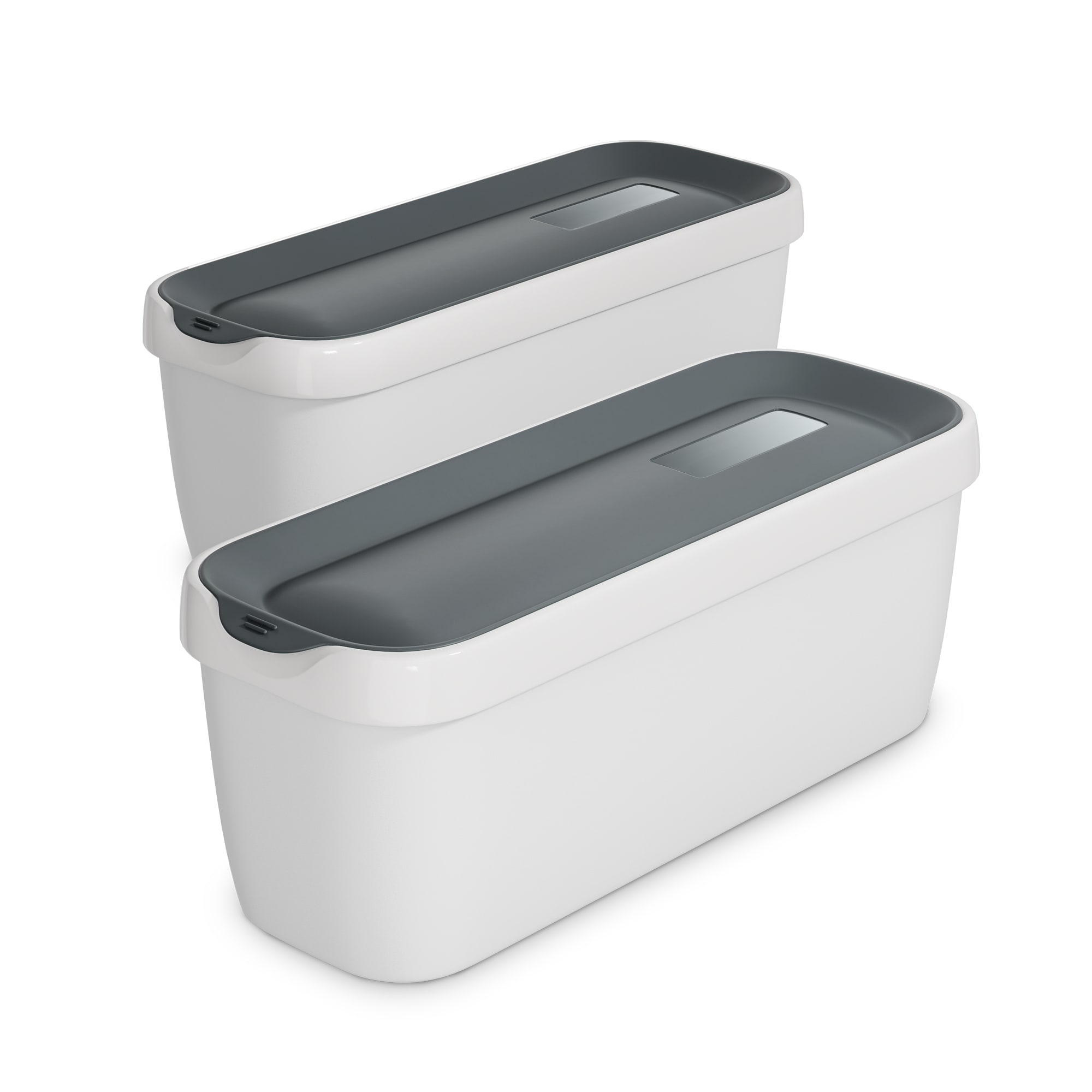 Set Klarstein Eisbehälter spája dlhú životnosť a vysokú kvalitu s nízkou vlastnou hmotnosťou.S objemom 1,5 litra na každý z dvoch nádob je set vhodný na prípravu zmrzliny, slushie aj jogurtu, aj pri väčších množstvách.Vďaka kompatibilite s Klarstein strojmi na zmrzlinu a jogurt sú tieto nádoby ideálnym náhradným dielom, ktorý zabezpečí čo najplynulejšiu výrobu jogurtu a zmrzliny.Po príprave je možné ich bez problémov umývať v umývačke riadu. Vyrobené z kvalitného plastu, nádoby sú odolné, vhodné do umývačky a vždy hygienické.