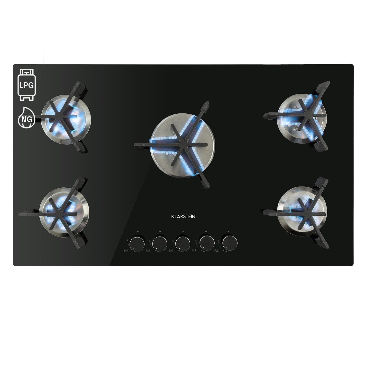 Klarstein Trifecta 5, plynová varná doska, 5 trojuholníkových horákov, sklokeramika, čierna