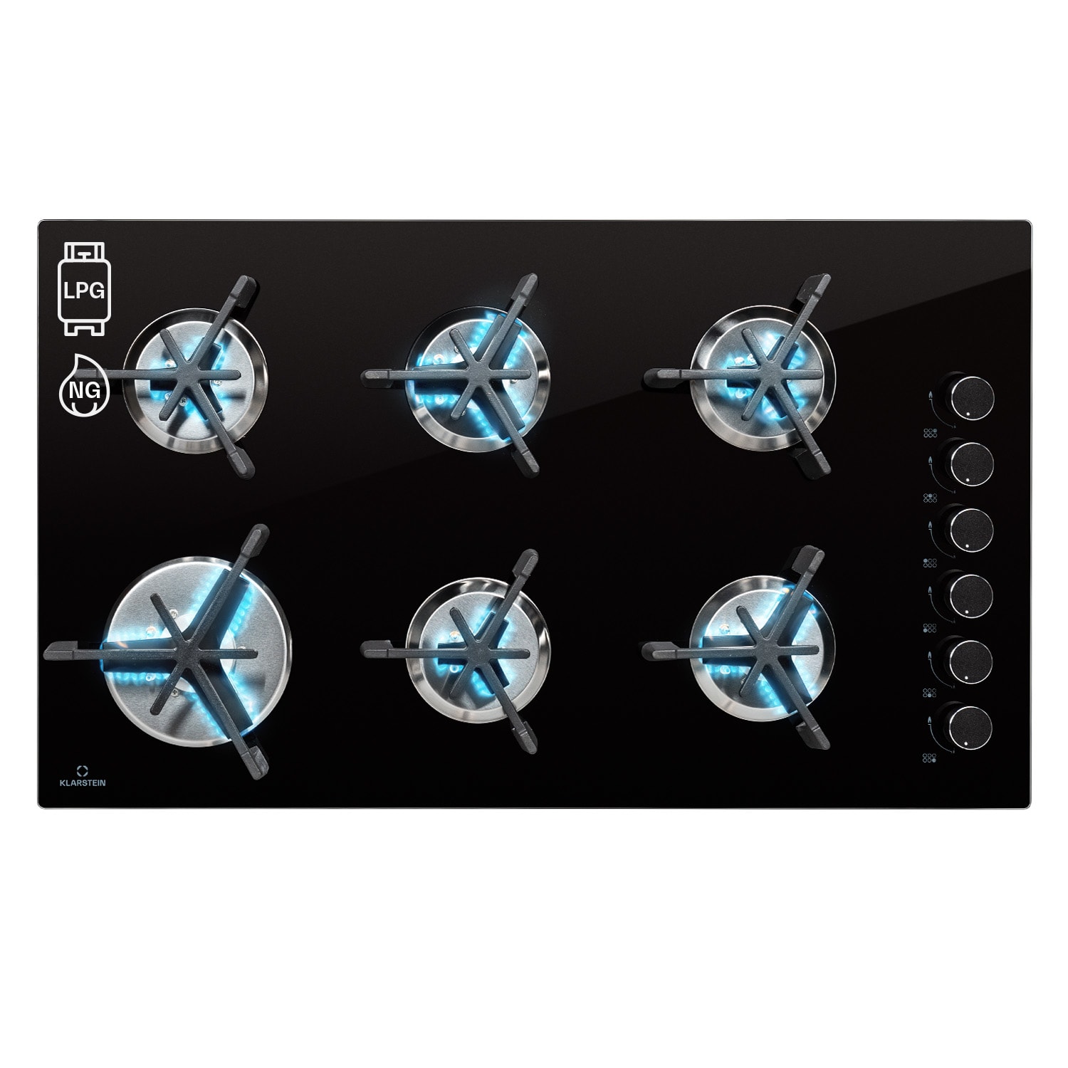 Klarstein Trifecta 6, plynová varná doska, 6 horákov, veľký, normálne a pomocné horáky, sklokeramika