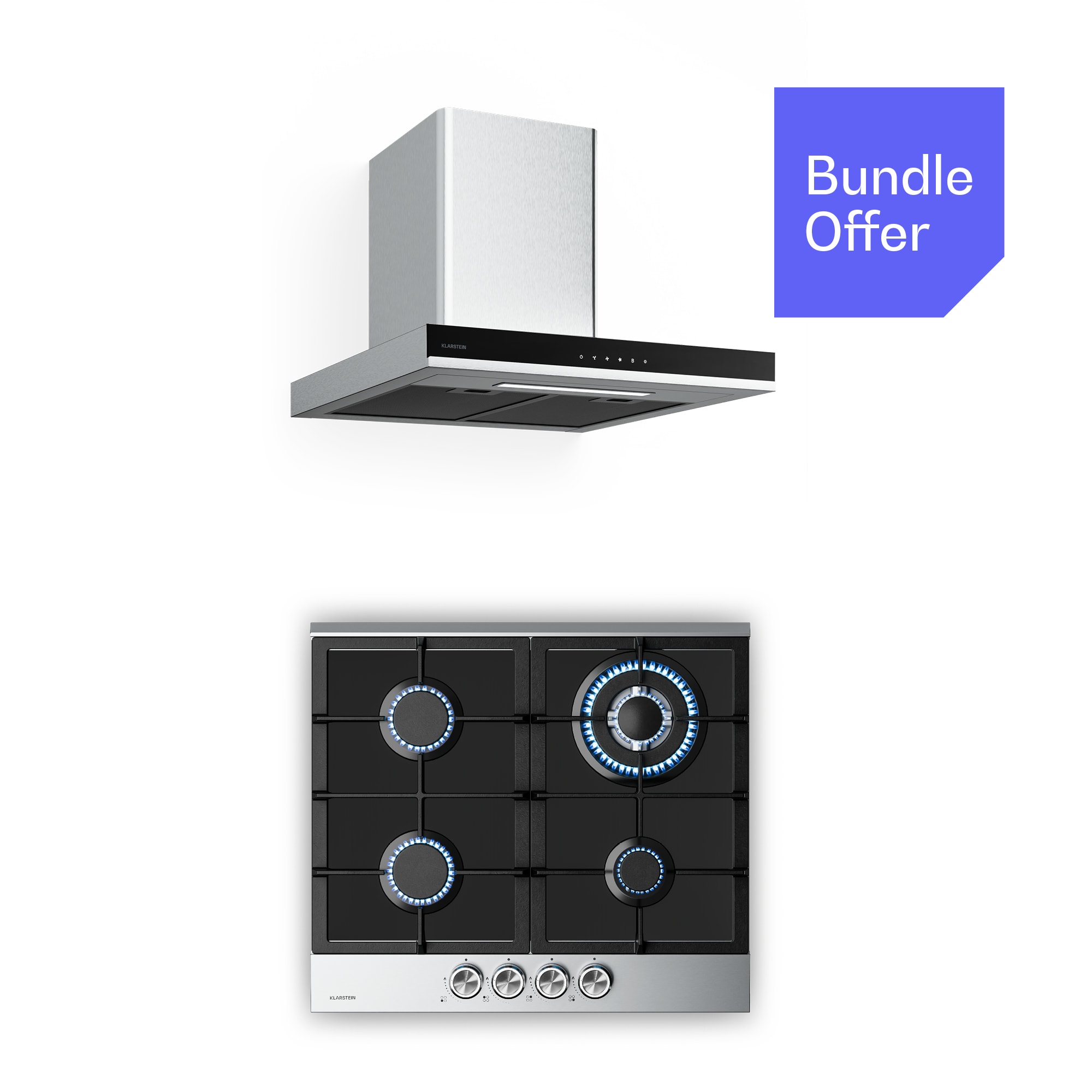 Klarstein Verosteel plynová varná doska + Verosteel komínový digestor | nehrdzavejúca oceľ | 60 cm