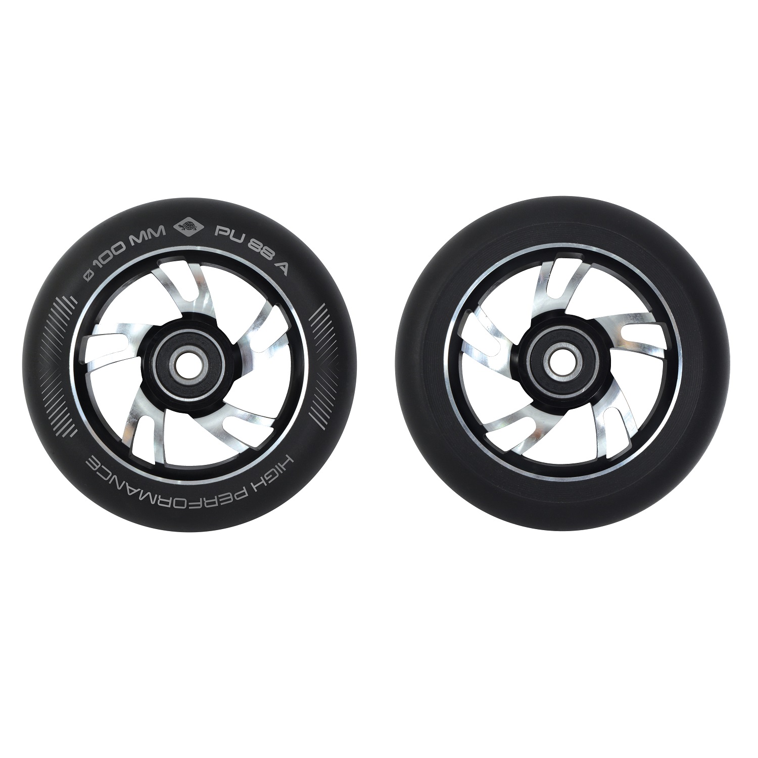 Sada náhradných koliesok pre freestylové kolobežky SCHILDKROT s priemerom 100 mm. Kvalitné kolieska renomovaného výrobcu na dvojfarebnom hliníkovom disku.