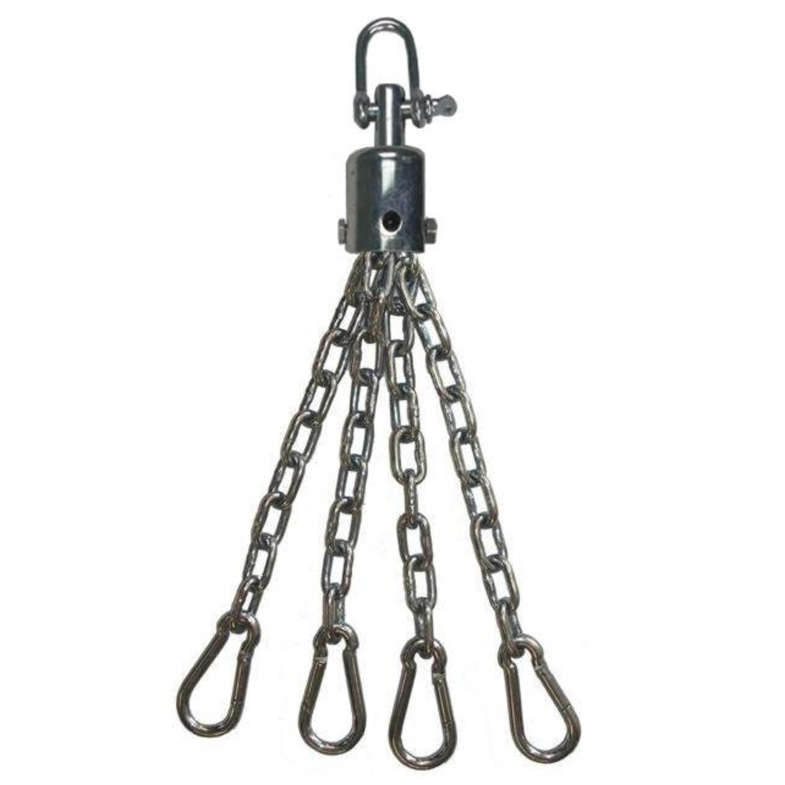 Náhradný štvorramenný reťaz na boxovacie vrece. Reťaz obsahuje otočnú kovovú sponu, ktorá podstatne zlepšujú tréning na boxovacom vreci. Držiak je ďalej vybavený karabínami na uchytenie vreca.