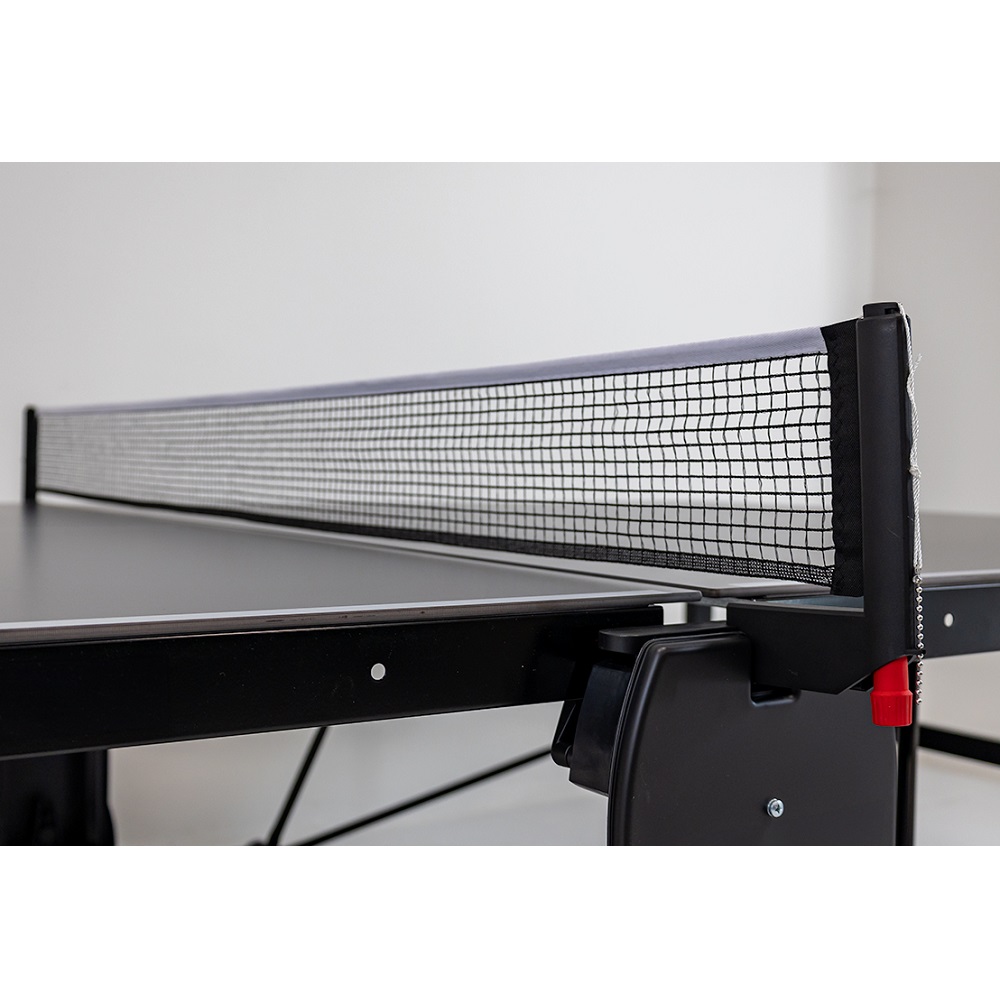 Kvalitná sieťka na stolný tenis s plastovými držiakmi. Výška siete je nastaviteľná skrutkou na spodnej strane konzoly, napínacia šnúra s retiazkou pre napnutie horného okraja siete.