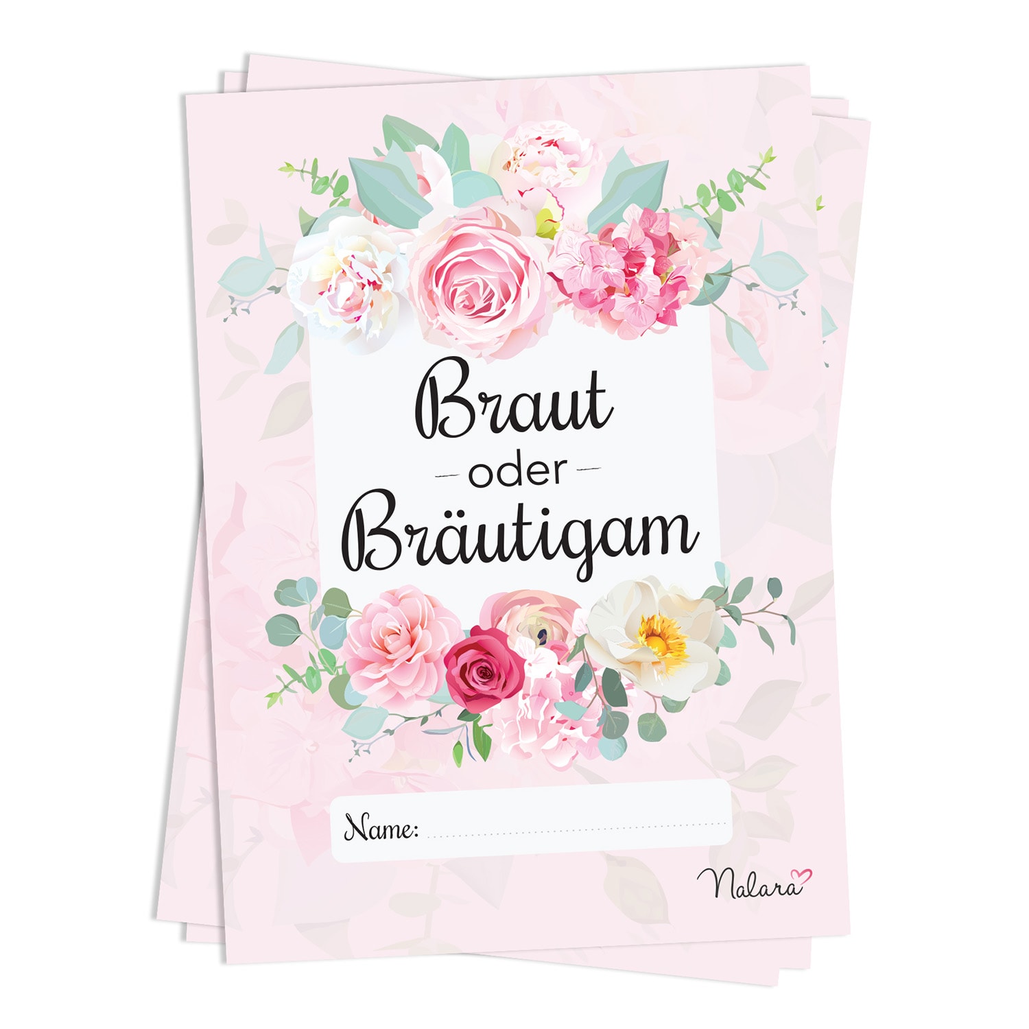 V deň svadby sa všetko točí okolo novomanželov. To je aj prípad zábavného svadobného kvízu : Pomocou 20 nezvyčajných, intímnych otázok sa svadobčania dozvedia niekoľko tajomstiev a vtipných anekdot priamo od svadobného páru. Hracie karty Nevesta alebo Ženích umožňujú zábavné špekulácie o nadchádzajúcom manželstve. Prostredníctvom moderovaného kvízu môžu hostia okrem iného zistiť, kto častejšie klame, kto hlasnejšie chrápe alebo kto vo vzťahu nosí nohavice: Je to nevesta alebo ženích? Najlepší spôsob, ako urobiť svadobný kvíz , je nechať moderátora prečítať otázky. Takže všetko, čo musia hostia urobiť, je rozhodnúť sa: Na koho sa táto otázka vzťahuje? V súlade s tým musí byť na hracej karte označená dámska alebo pánska topánka . Nakoniec sa zozbierajú hracie karty označené menami a korunujú sa víťazi s najväčším počtom bodov. Spielehelden prináša zábavu do každej vysnívanej svadby, odhaľuje malé tajomstvá nevesty i ženícha a navzájom spája všetkých svadobčanov. Je celkom možné, že sa dokonca nájde ďalší svadobný pár….