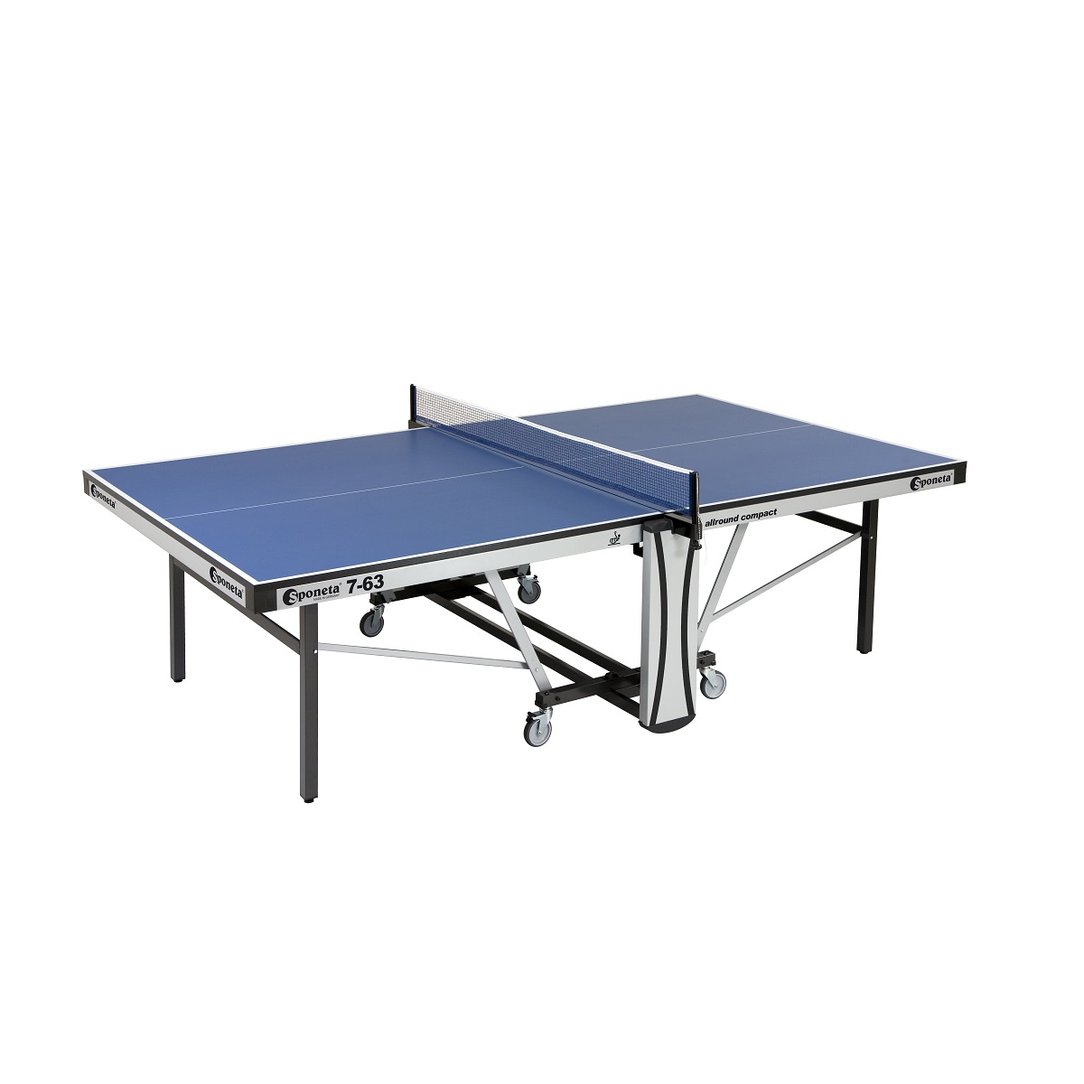 Závodný stôl na stolný tenis SPONETA S7-63i pre vnútorné – interiérové použitie. Stôl je vybavený kolieskami pre jednoduchú manipuláciu v zloženom stave, z toho 2 kolieska majú aretáciu proti pohybu. Pingpongový stôl SPONETA na stolný tenis S7–63i je dodávaný spolu s držiakom na sieťku a sieťkou.