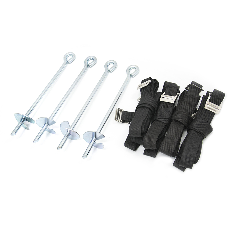 Set na ukotvenie trampolíny je určený pre akékoľvek kruhové alebo obdĺžnikové trampolíny. Má 2 základné účely, umožniť presun trampolíny bez vypadávania spodnej časti nôh a pomôže ukotviť trampolínu do zeme pomocou kotviacich hákov. Dlžka kolíkov 30 cm.