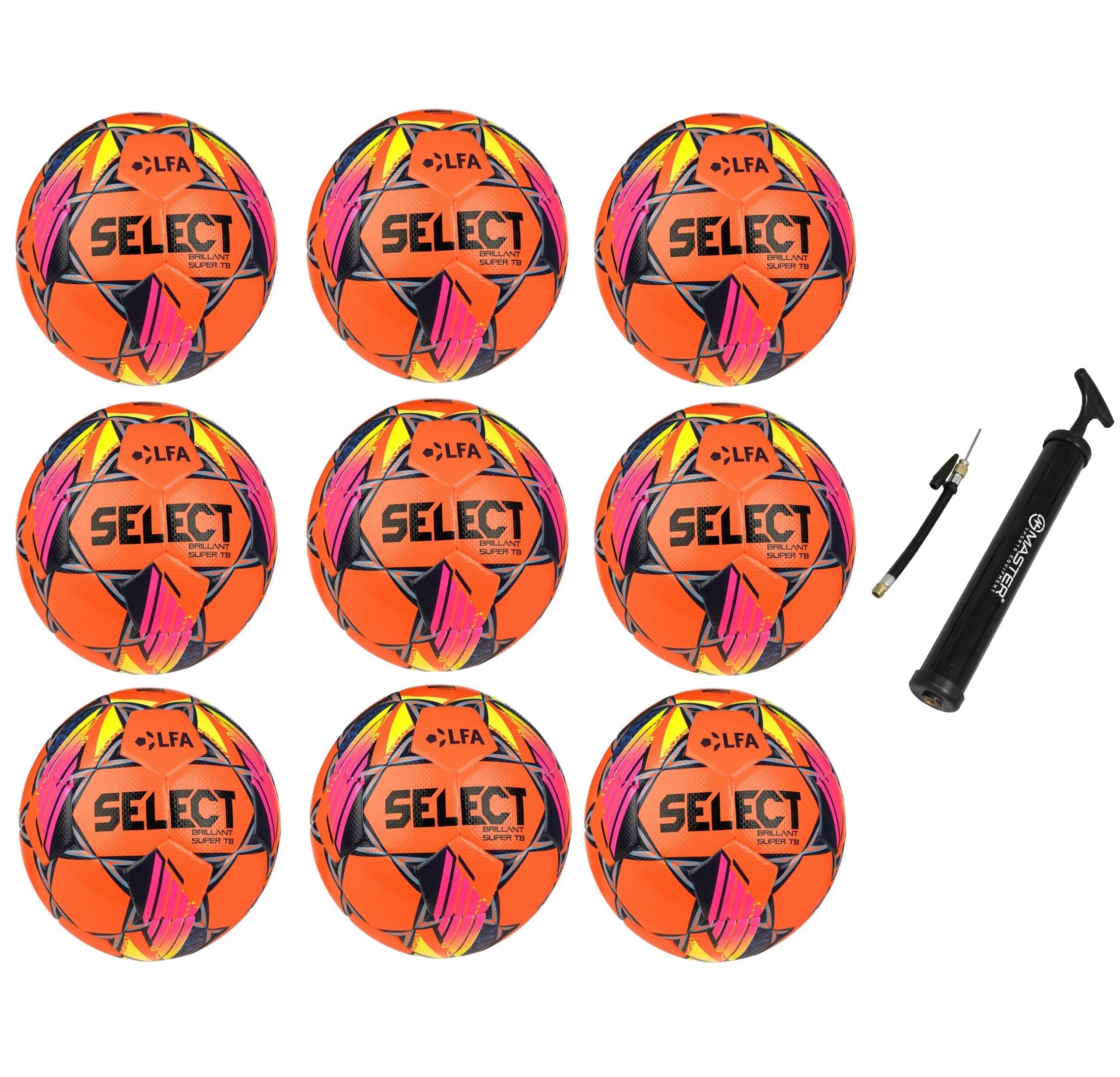 Výhodný set deviatich Top lôpt SELECT FB Brillant Super TB SK Chance Liga 2024/25 5 oranžová-modrá za zvýhodnenú akčnú cenu. V balení navyše pumpa na lopty MASTER 12.