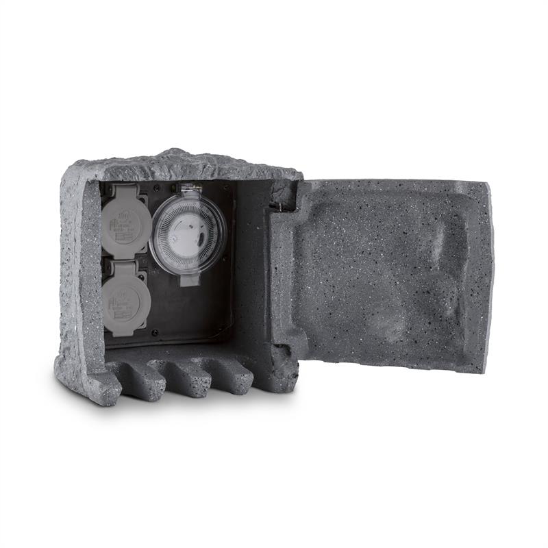 Waldbeck Timer Rock, záhradná zásuvka, 2-itý rozdeľovač, 5 m, spínacie hodiny, skala, tmavosivá